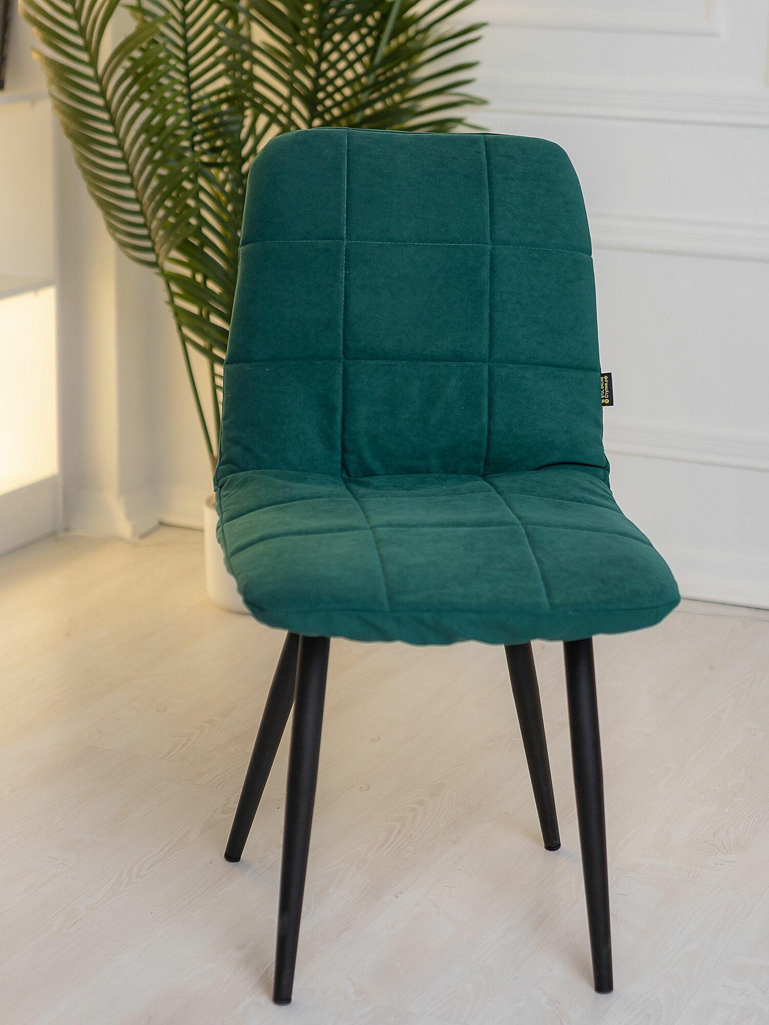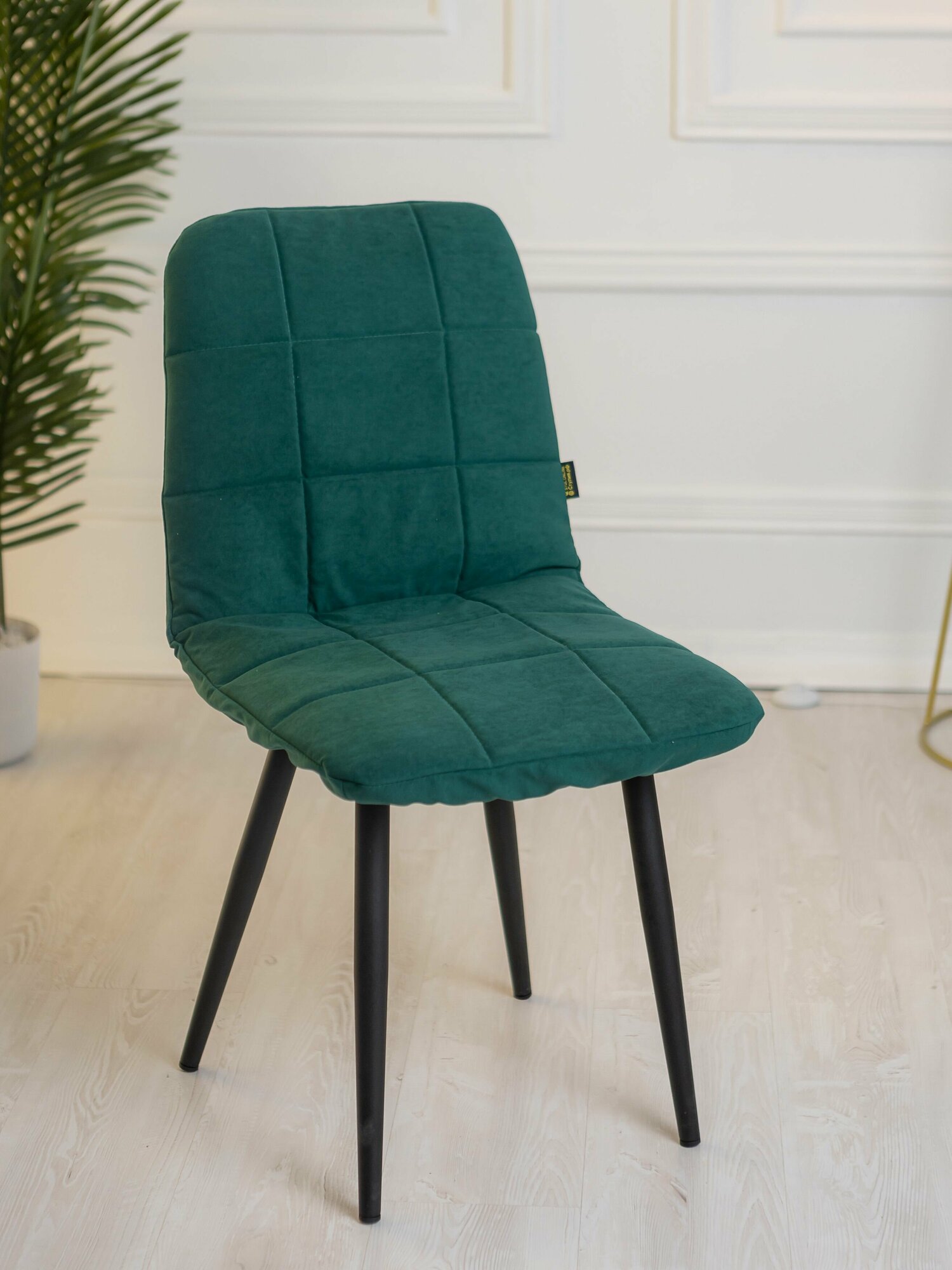 Купить Чехлы на стулья со спинкой на кухню Тедди из велюра, изумруд прострочка квадрат, 4 шт