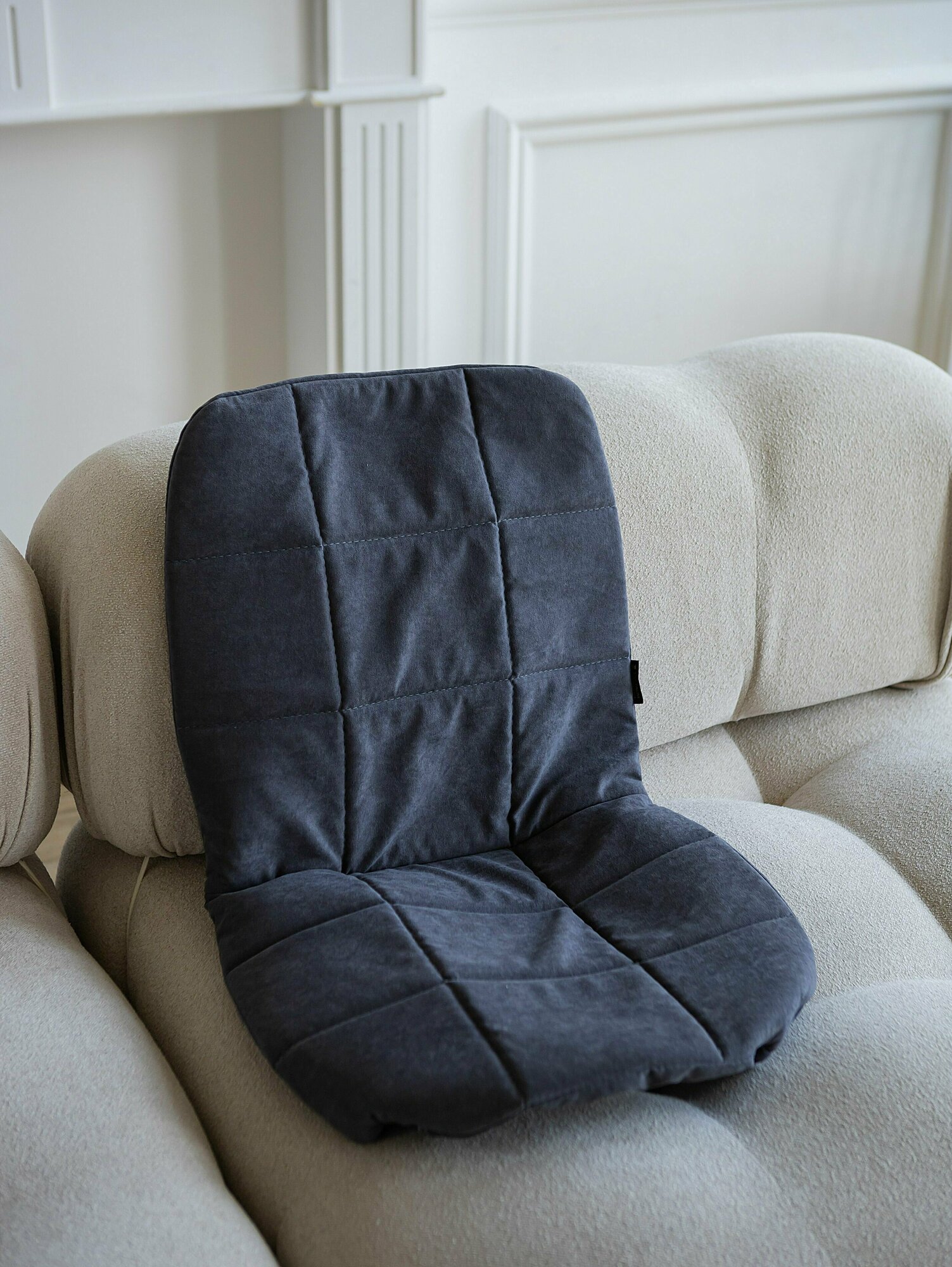 Чехол на стул со спинкой Тедди из велюра, темно-серый, прострочка квадрат, 1 шт