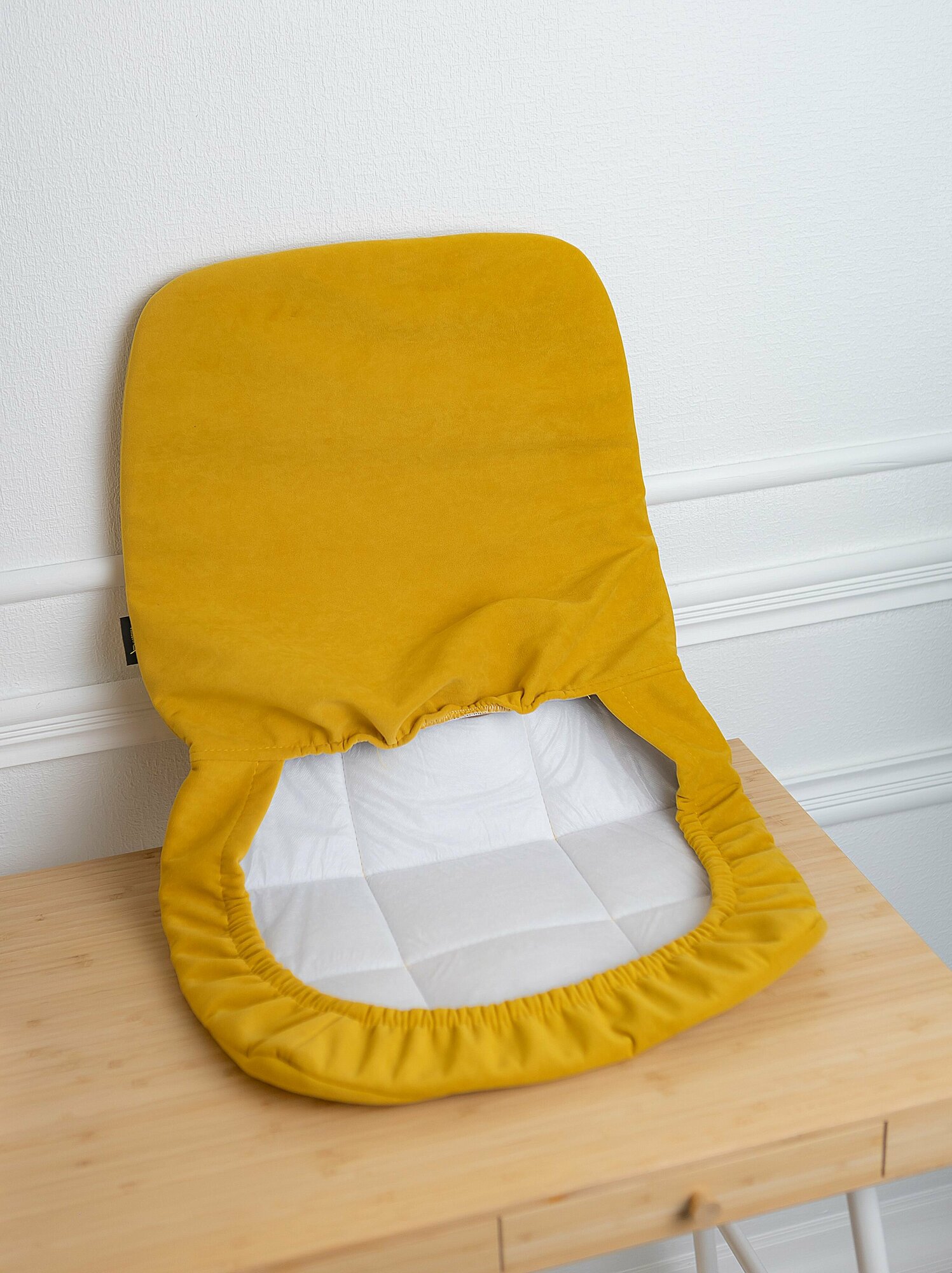 СохранитьЧехол на стул со спинкой Тедди из велюра, горчица прострочка квадрат, 4 шт интересное: