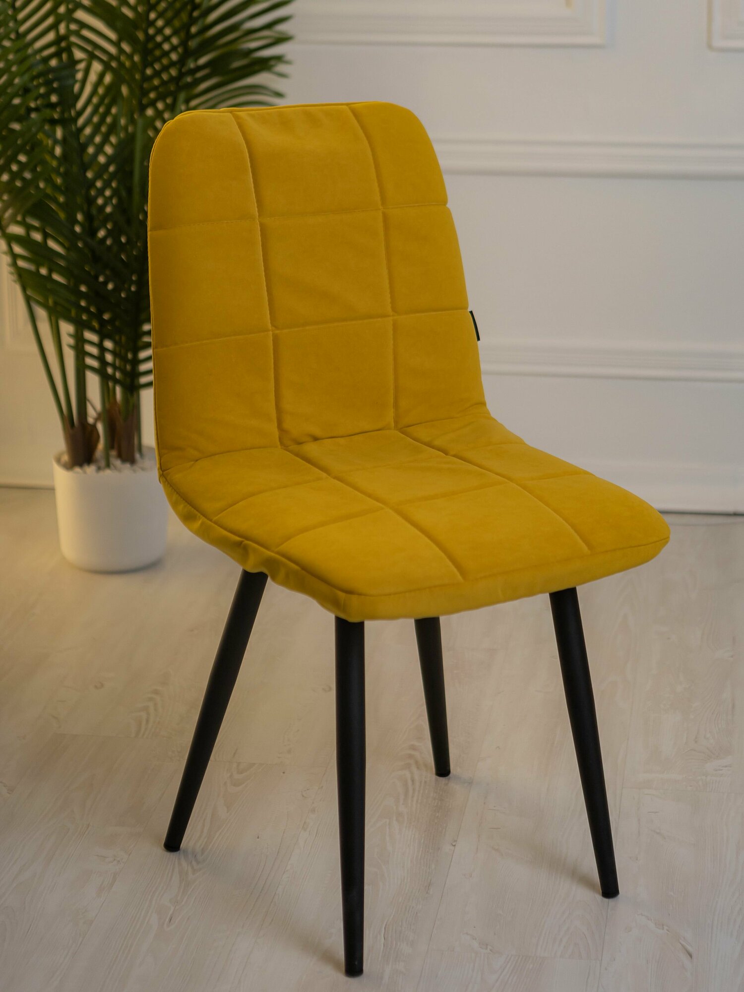 Купить Чехол на стул со спинкой Тедди из велюра, горчица прострочка квадрат, 4 шт