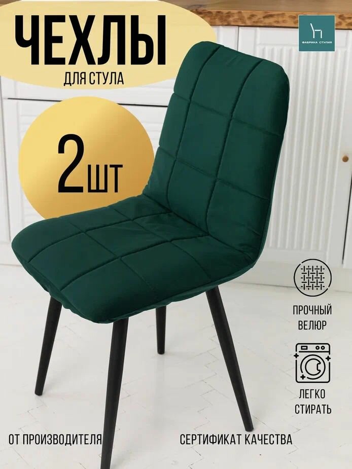 Купить Чехол для мебели Чили из велюра, изумруд прострочка квадрат 2 шт