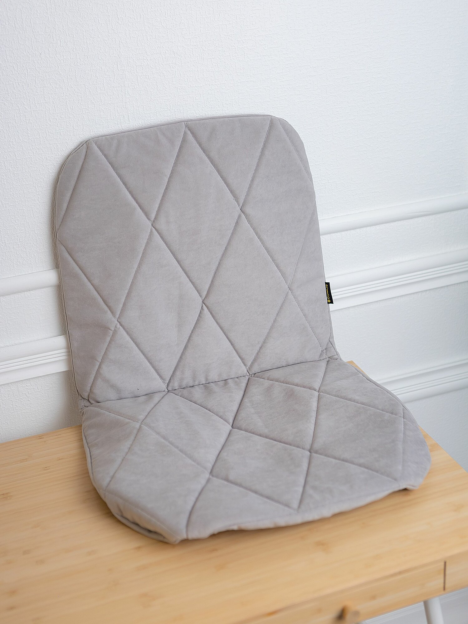 Чехол на стул со спинкой Тедди из велюра, темно-серый, прострочка квадрат, 1 шт