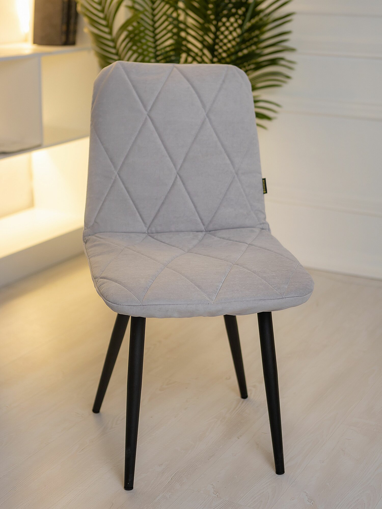 Чехол на стулья Mилана из велюра, серый прострочка ромб 2 шт