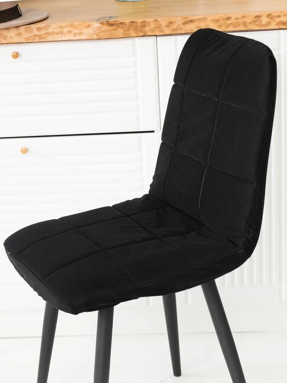 Купить Чехол для мебели Чили из велюра, чёрный прострочка квадрат 4 шт