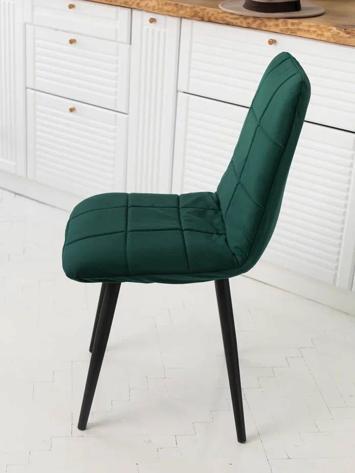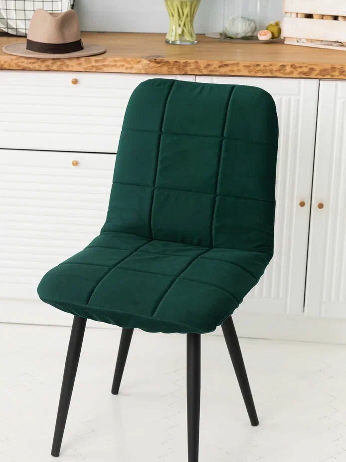 Чехлы на стулья со спинкой на кухню Тедди из велюра, изумруд прострочка квадрат, 4 шт