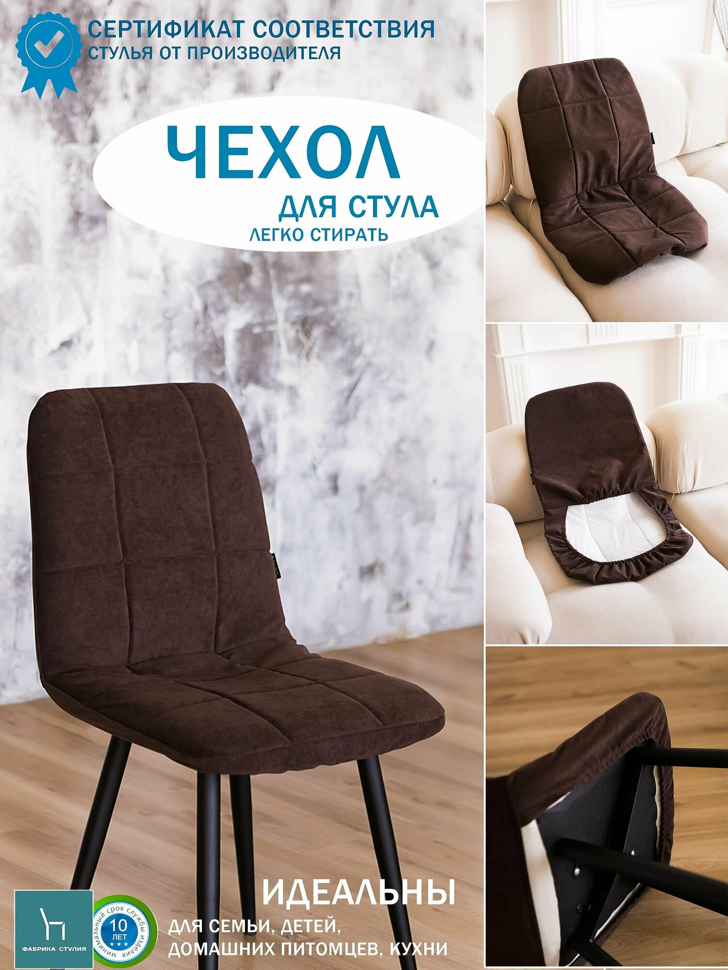 Чехлы для стула 4 шт Тедди из велюра, шоколад, прострочка квадрат