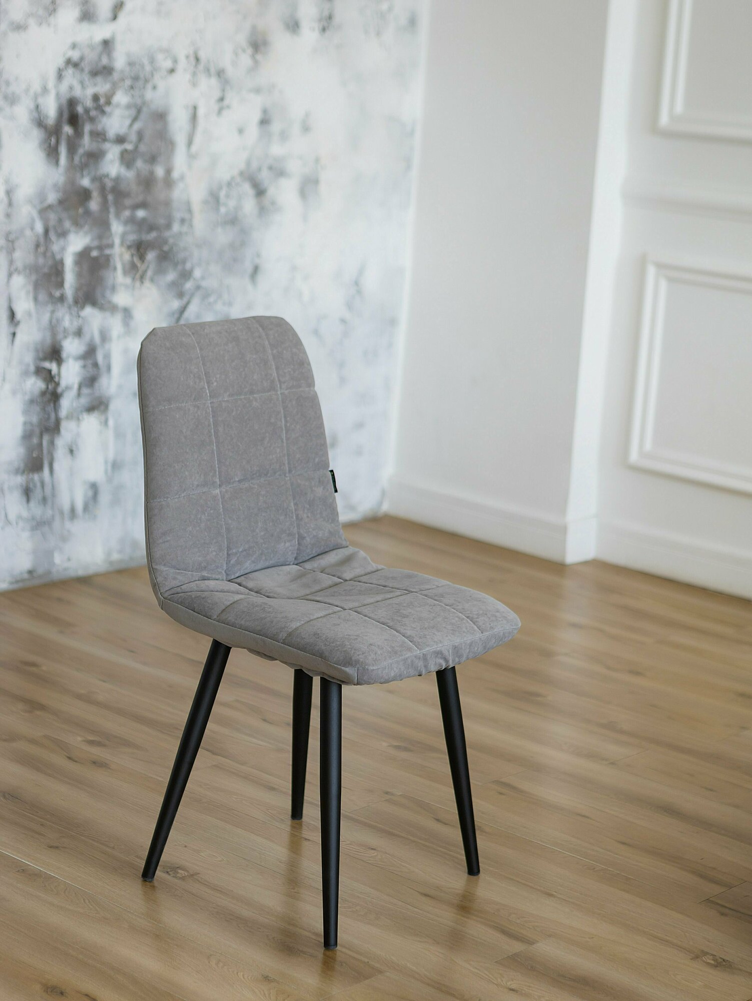 Еврочехол для стула Тедди из велюра, серый, прострочка квадрат, 1 шт