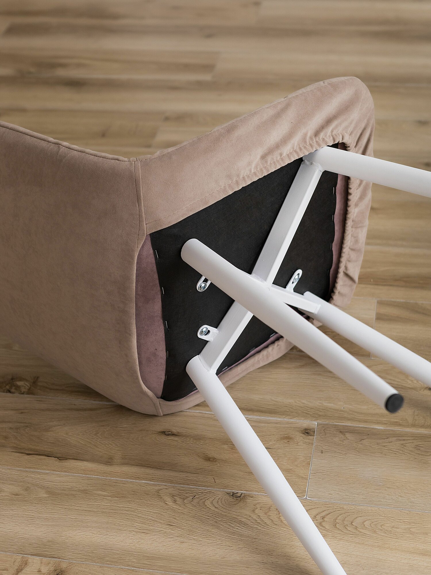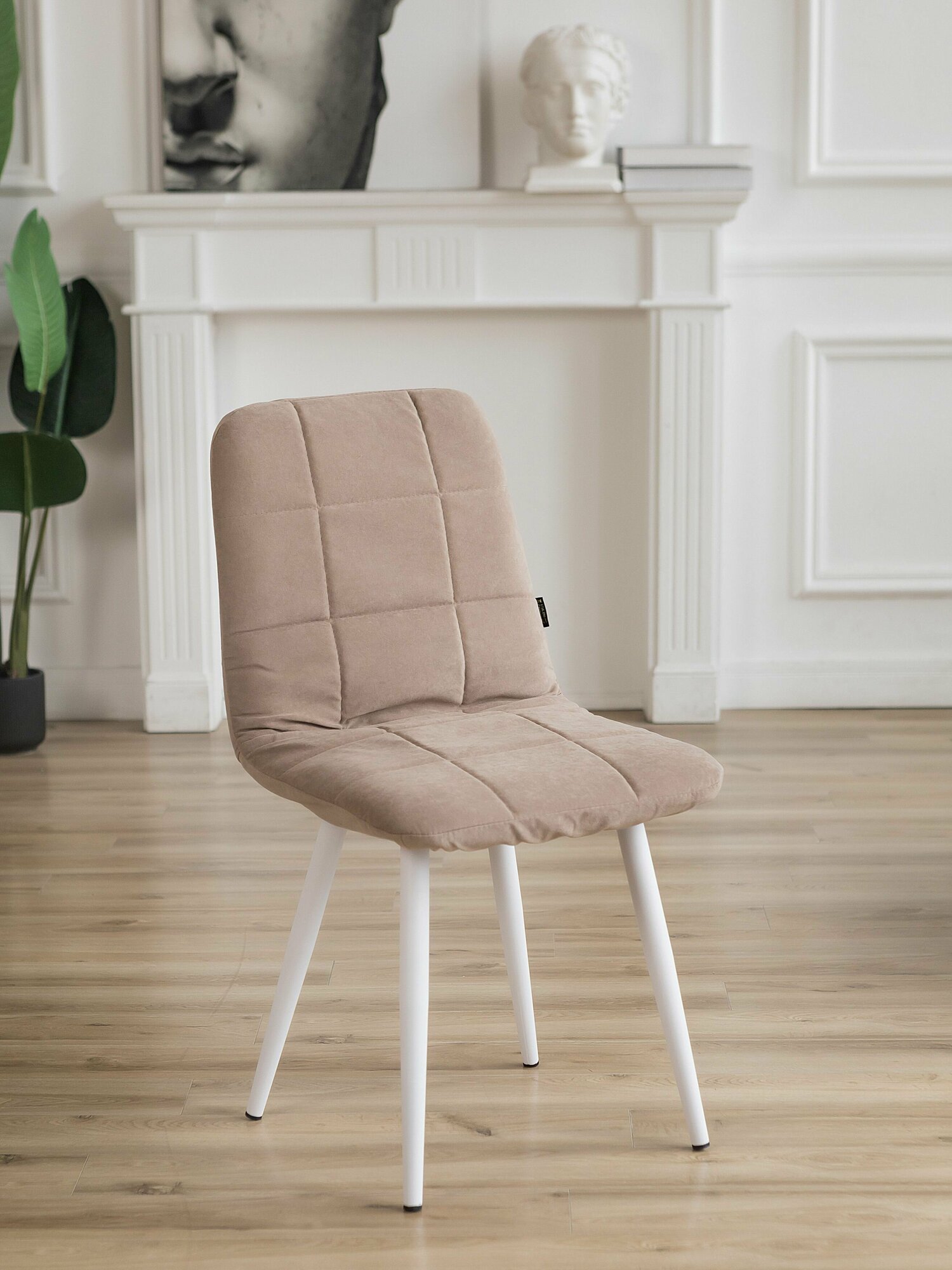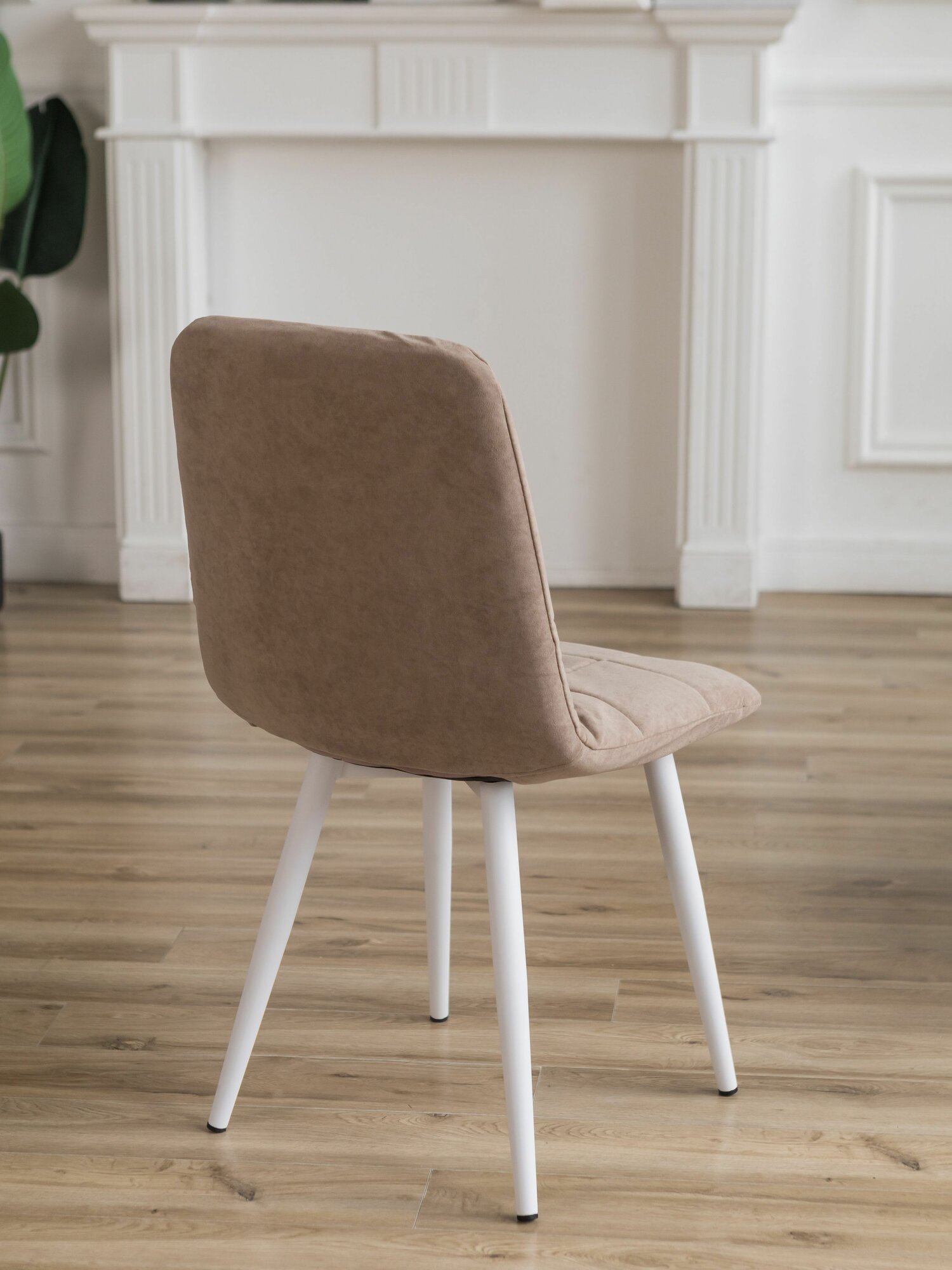 Купить Чехлы на стулья со спинкой на кухню Тедди из велюра, бежевый, прострочка квадрат, 2 шт
