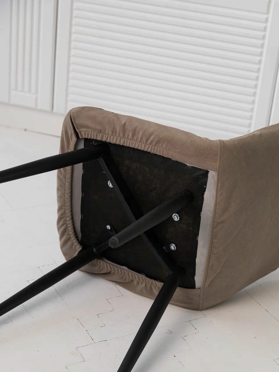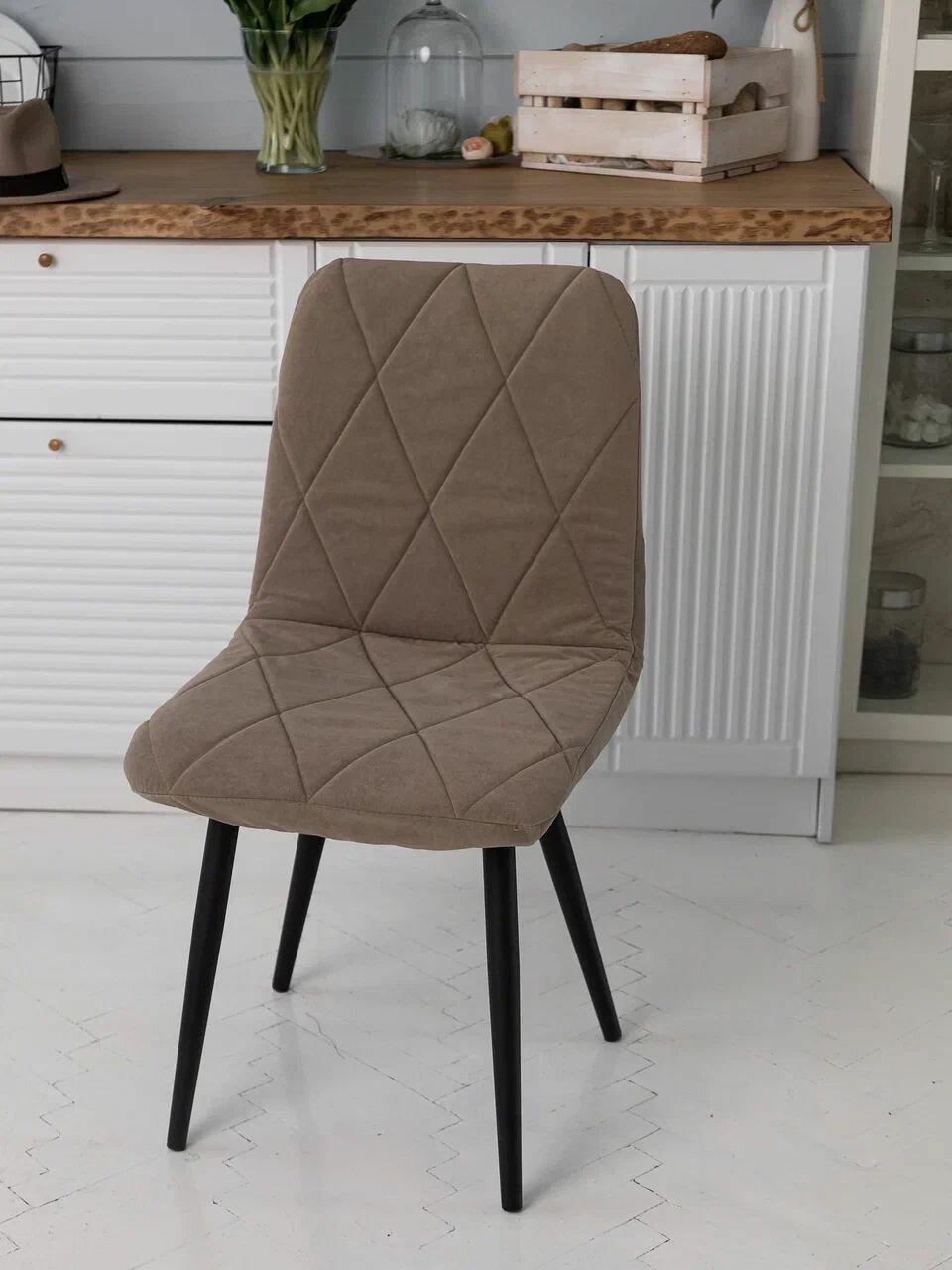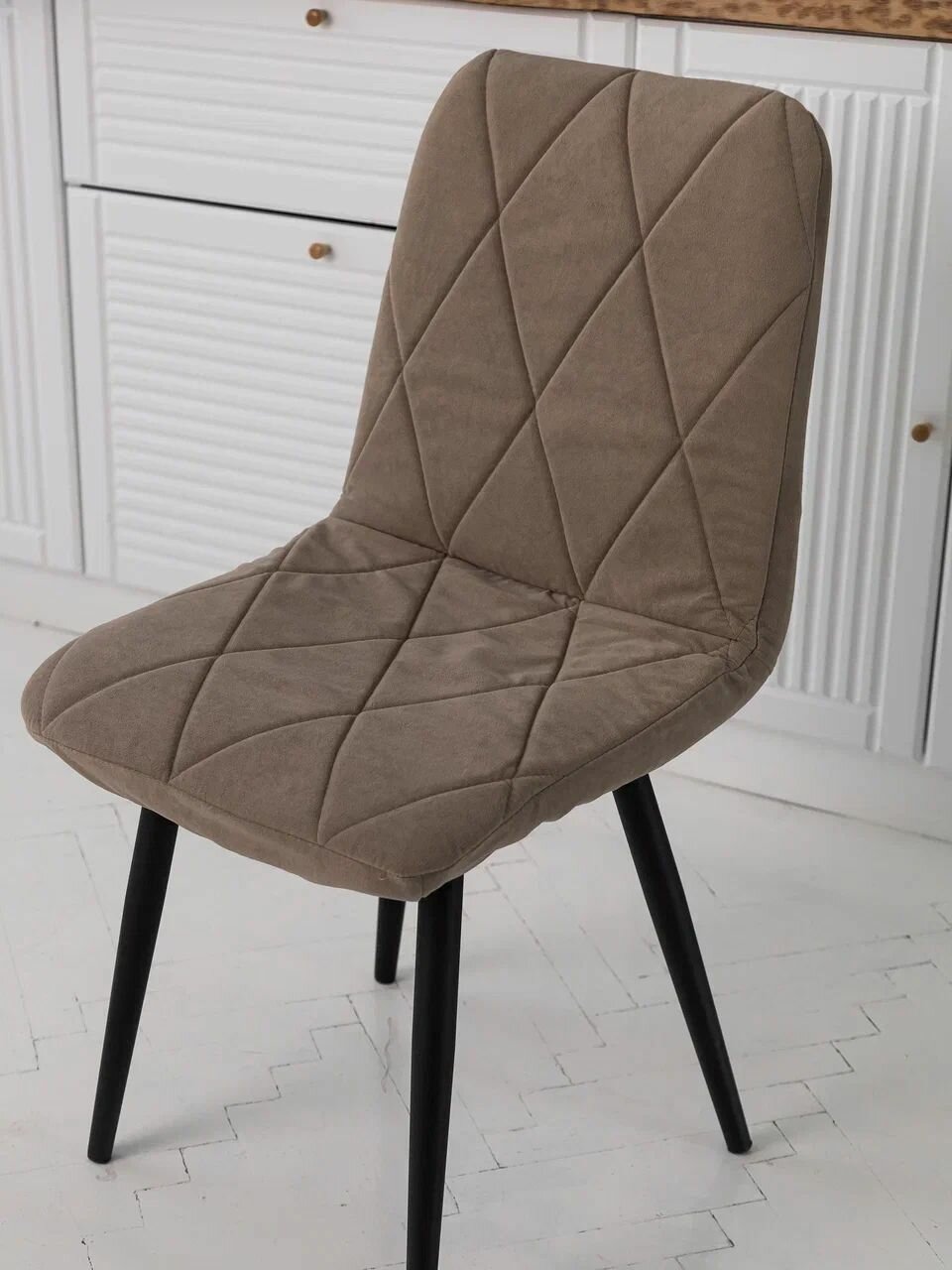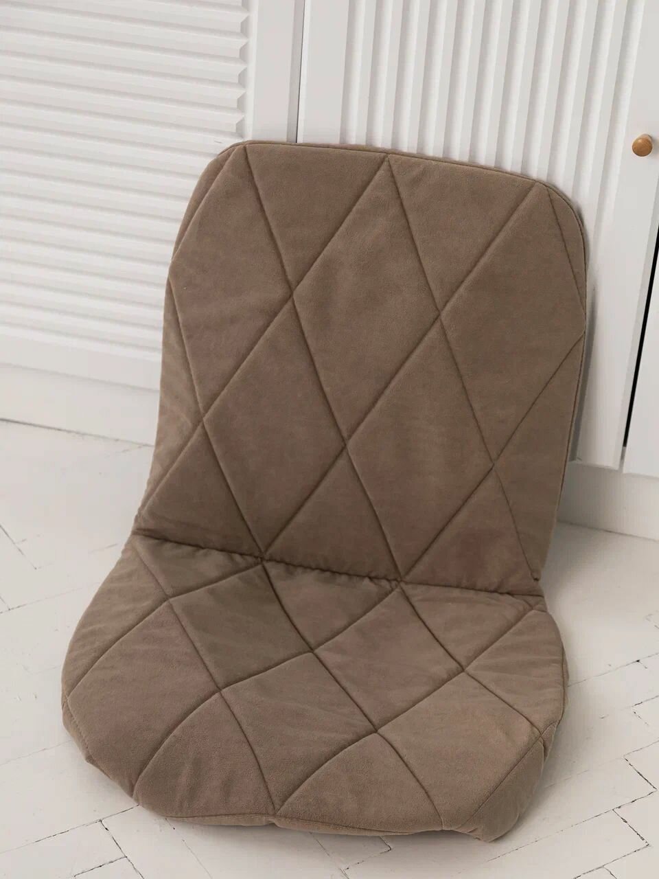 Чехол на стул универсальный Mилана из велюра, бежевый прострочка ромб 4 шт