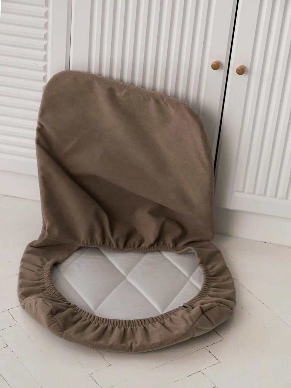 Чехлы на стулья Тедди из велюра, шоколад, прострочка квадрат, 1 шт