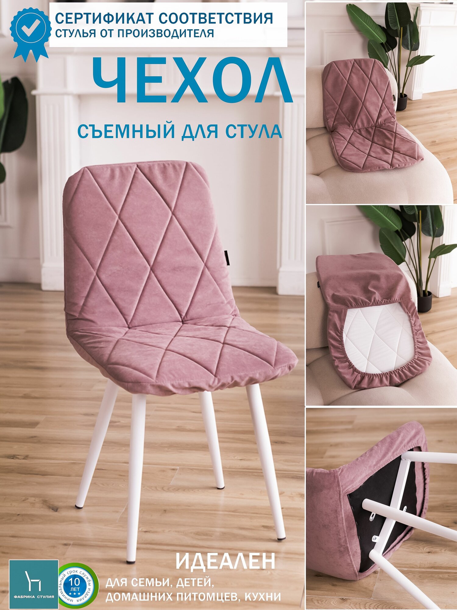 Чехлы на стулья Mилана из велюра, пыльная роза, прострочка ромб, 2шт интересное: