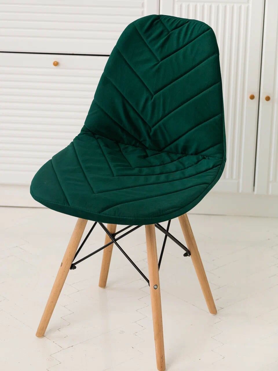 Чехлы на стулья Eams Эймс зеленые прострочка диагональ 2 шт