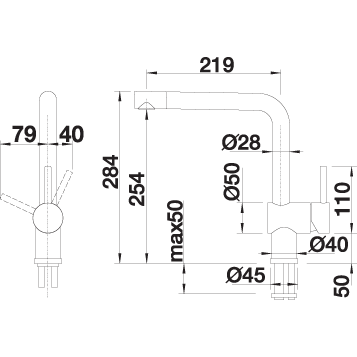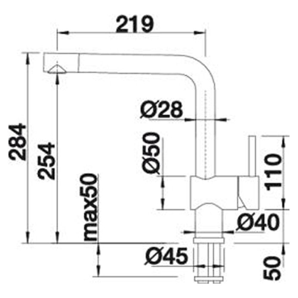 | Длина излива | 219 мм |