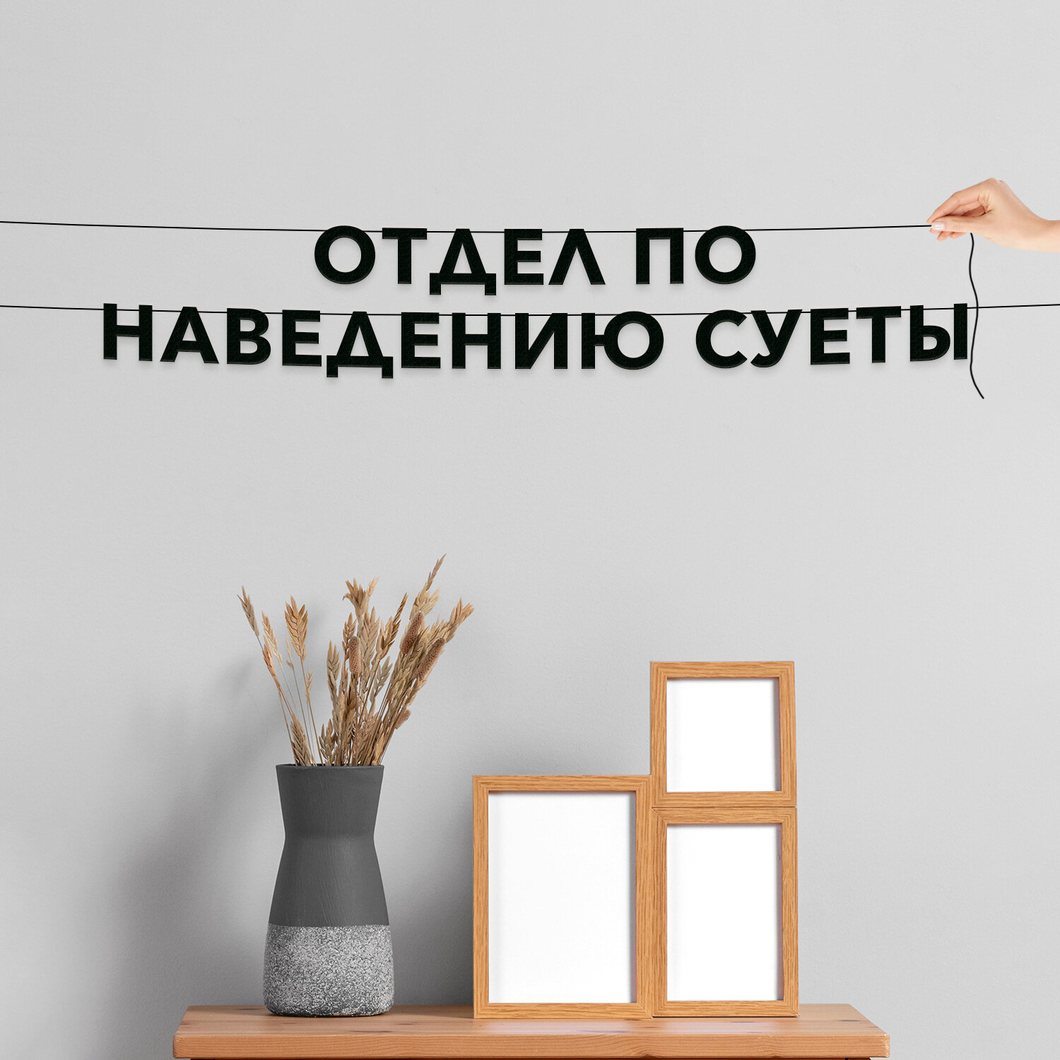 Гирлянда растяжка из букв, интерьерная - “Отдел по наведению суеты“, черная текстовая растяжка. интересное: