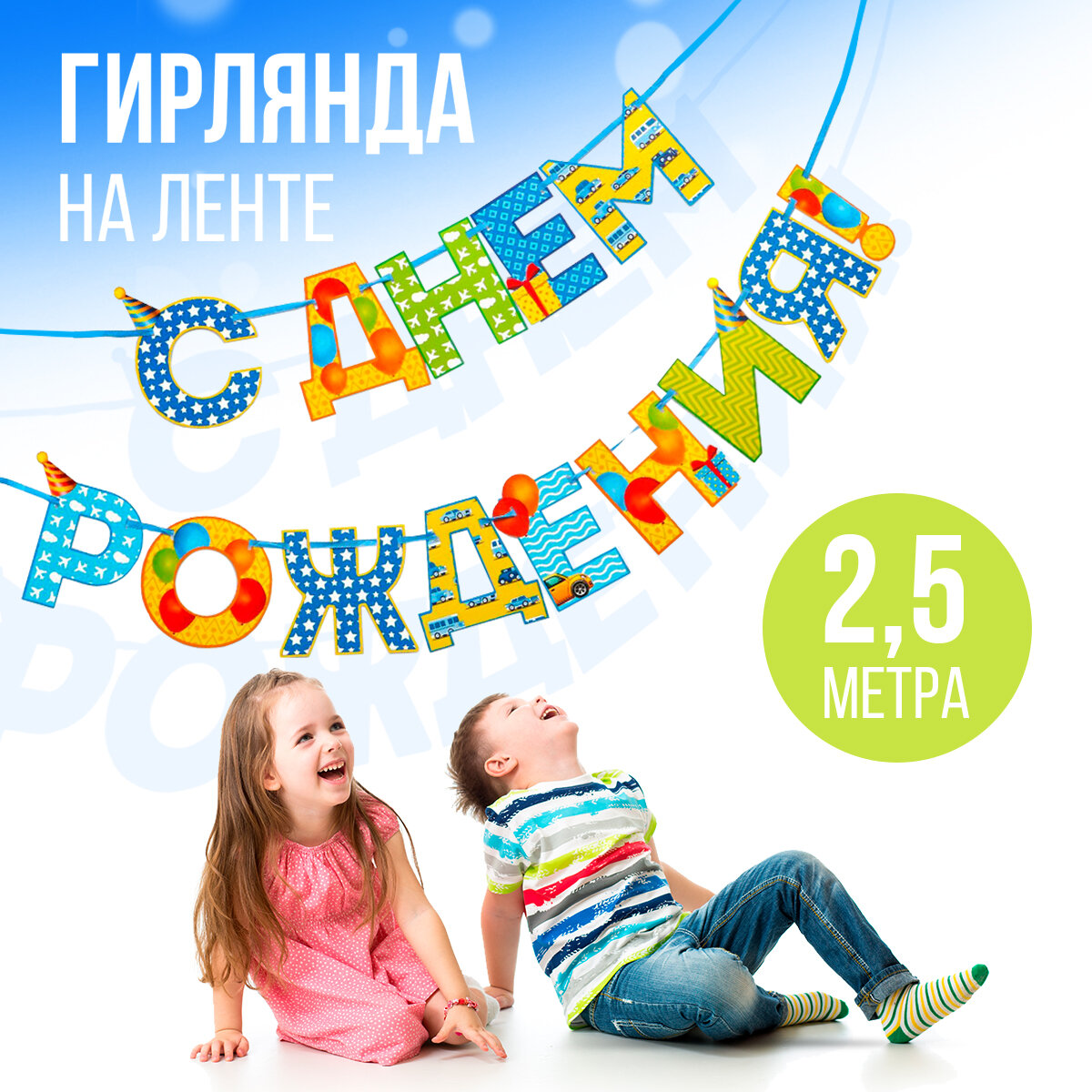 Купить Страна Карнавалия Гирлянда на ленте «С Днём Рождения!«, мальчику, длина 250 см