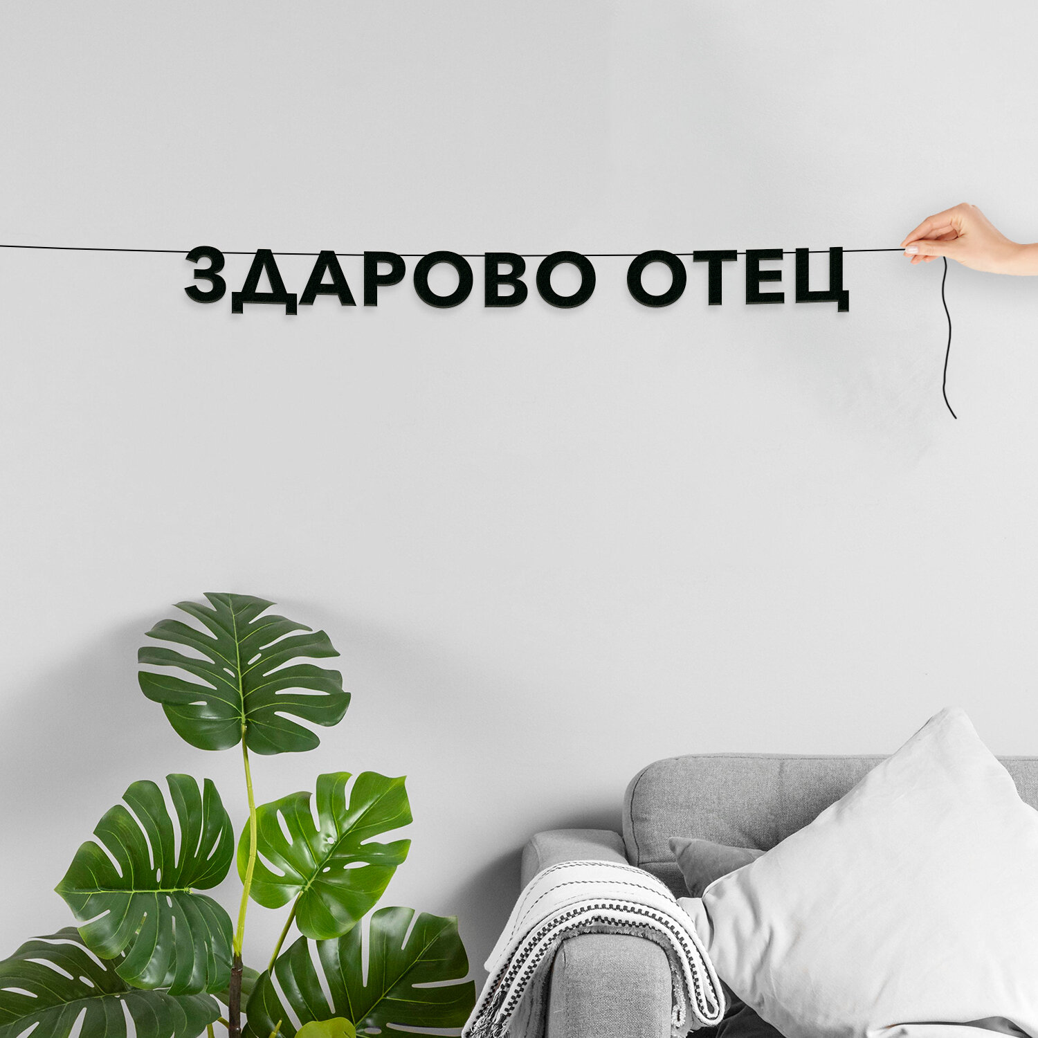 Купить Буквы декоративные, Мемы - “Здарово отец“, черная текстовая растяжка.
