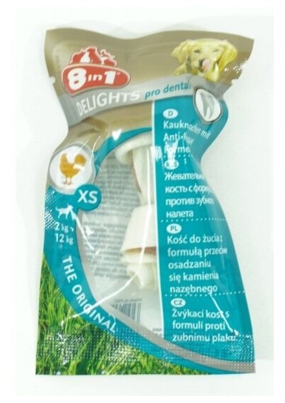 8в1 Дентал косточка для очистки зубов мелких собак XS/7,5см (1шт х 12г), с куриным мясом внутри,семенами петрушки Dеlights Pro Dental Bone
