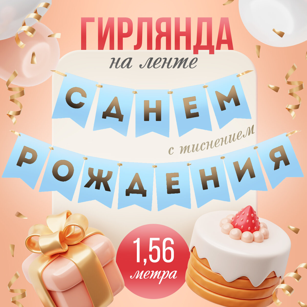 | Комплектация | Гирлянда тиснение на бумаге «С Днем Рождения», |