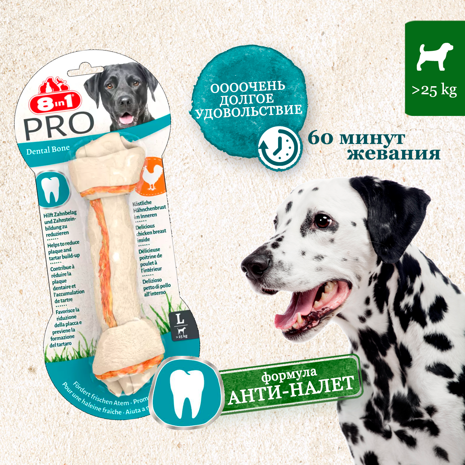 8in1 PRO DENTAL DELIGHTS L косточка с куриным мясом для собак крупных пород, с добавлением минералов, 21 см