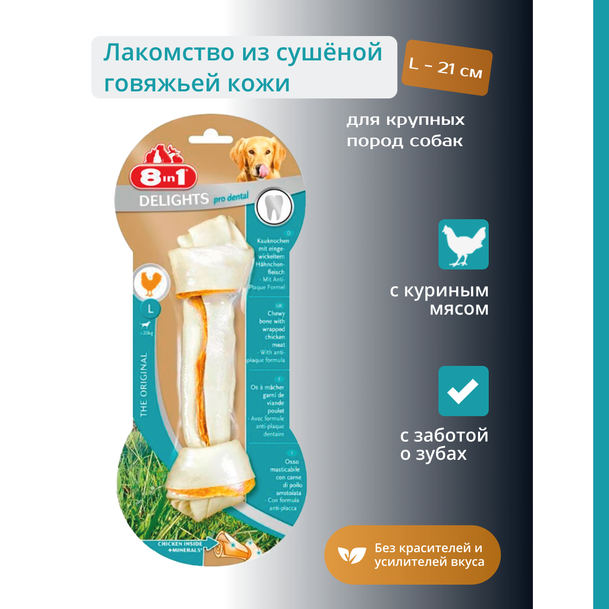 8in1 DENTAL DELIGHTS L косточка с куриным мясом для крупных собак с минералами 21 см, 85 г х 2 шт.