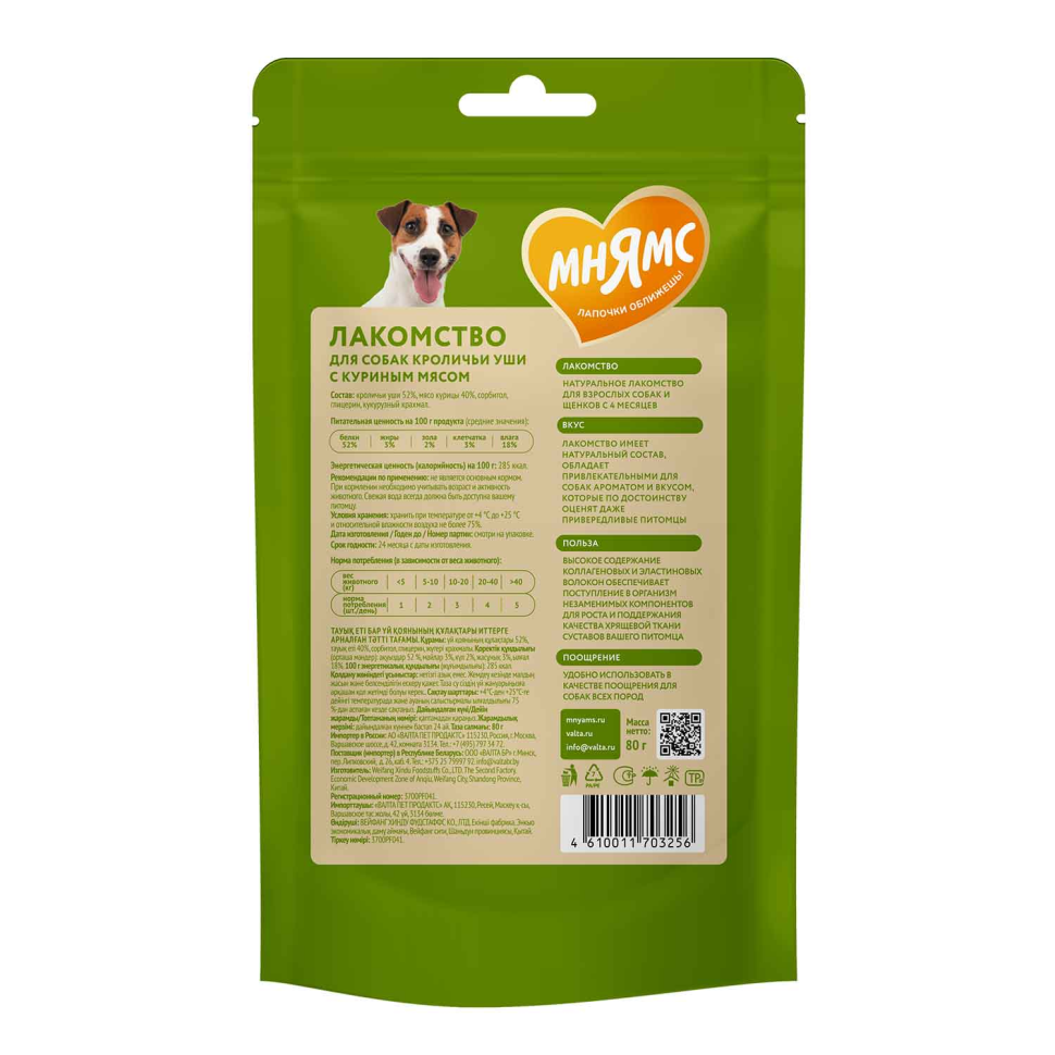 Лакомство мнямс для собак кроличьи уши с куриным мясом (80 гр)