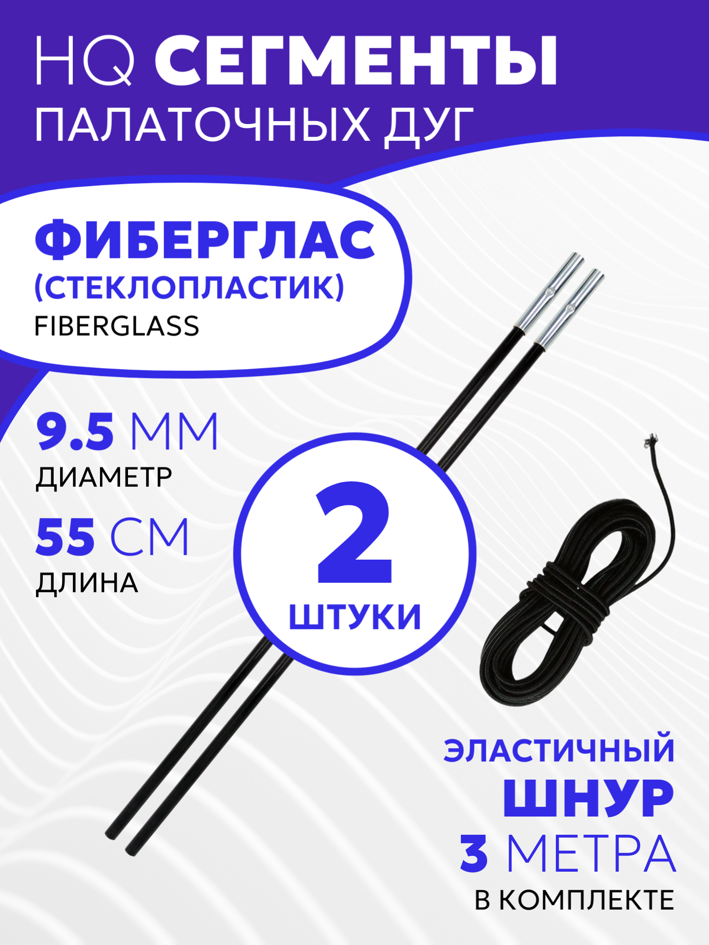 Купить Сегменты дуг для палатки (Ø 9,5 мм, длина 55 см, фиберглас, 2 штуки) + эластичный шнур (3 метра)