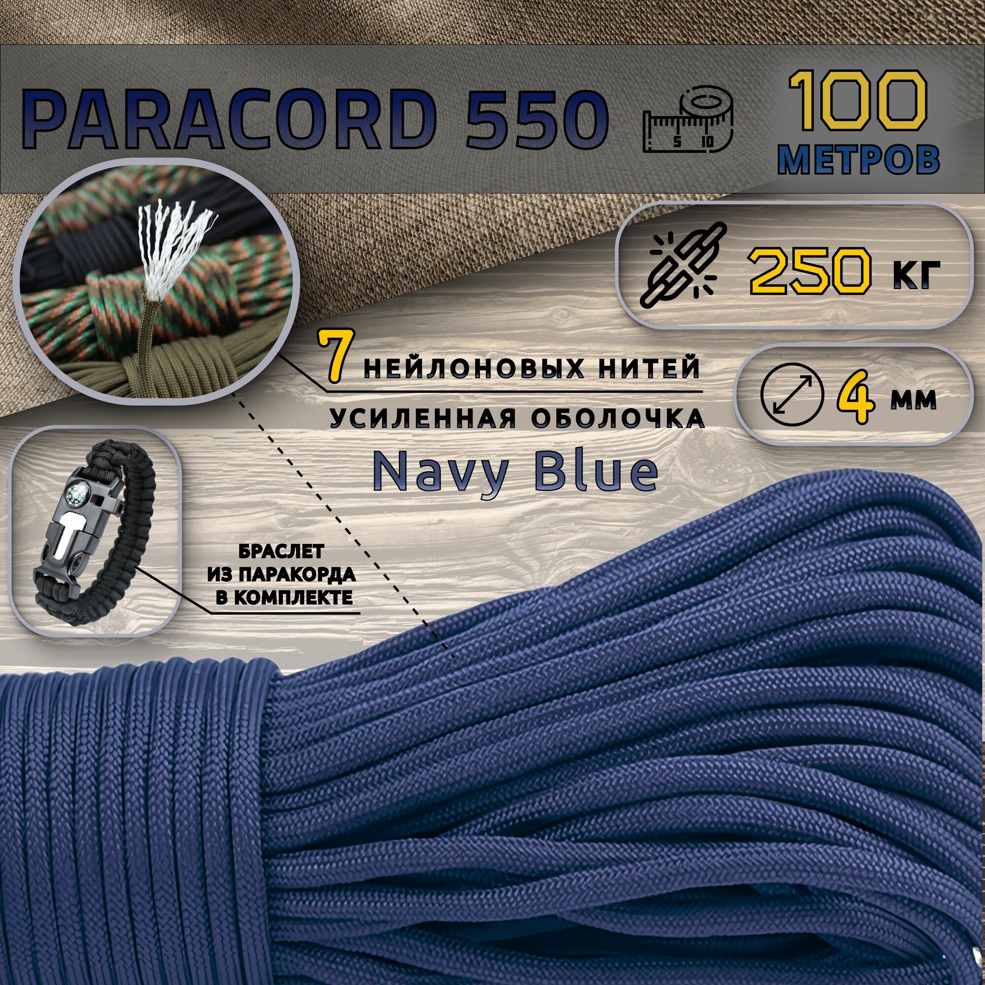 Купить Паракорд Paracord 550 Navy Blue 100 м + браслет, 4 мм, нейлоновый сердечник 7 нитей, туристический трос/веревка, 100 метров