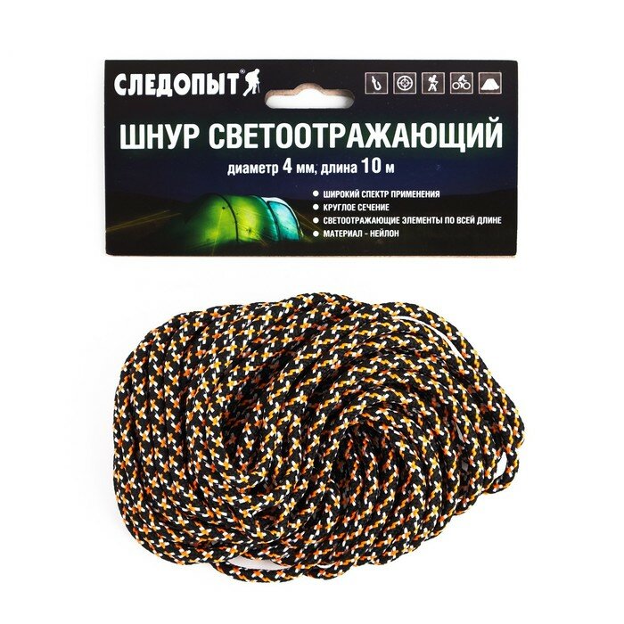 Купить Шнур-паракорд светоотражающий "следопыт" черный-оранжевый-белый, d-4 мм, 10 м