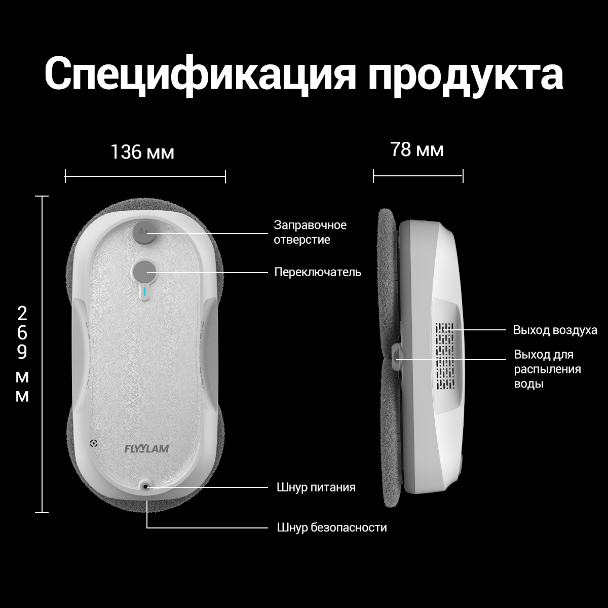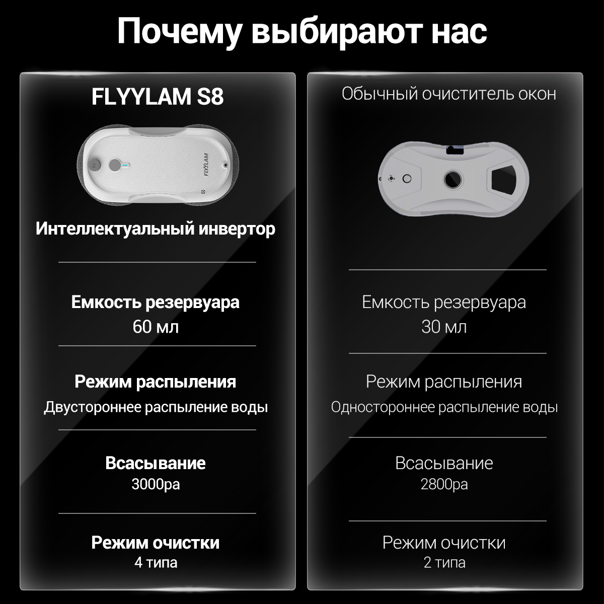 Робот для мойки окон FLYYLAM S8,Сила всасывания 3000pa,Интеллектуальное преобразование частоты интересное: