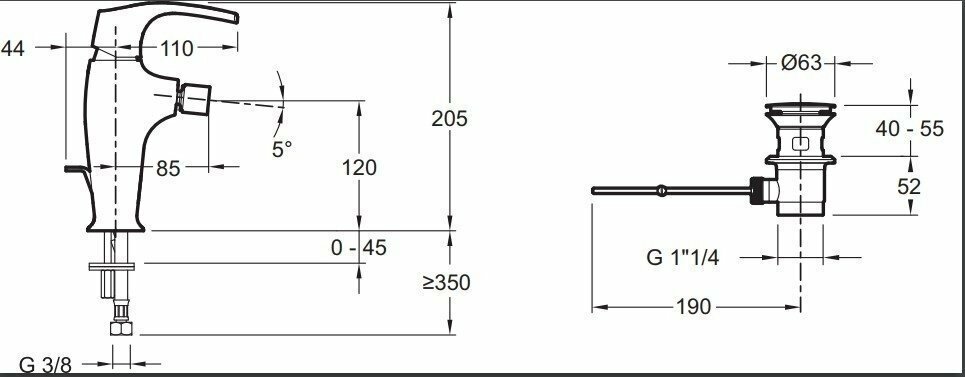 | Длина излива | 85 мм |