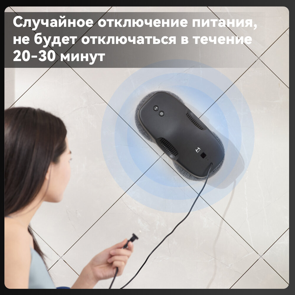 | Особенности | автоматическая остановка / автоматическое определение зоны уборки / звуковая индикация / мойка безрамных поверхностей / обход препятствий / светодиодная индикация |