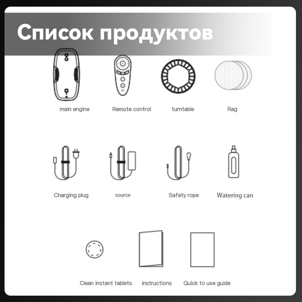 | В комплекте | зарядное устройство, моющая тряпка, пульт ДУ |