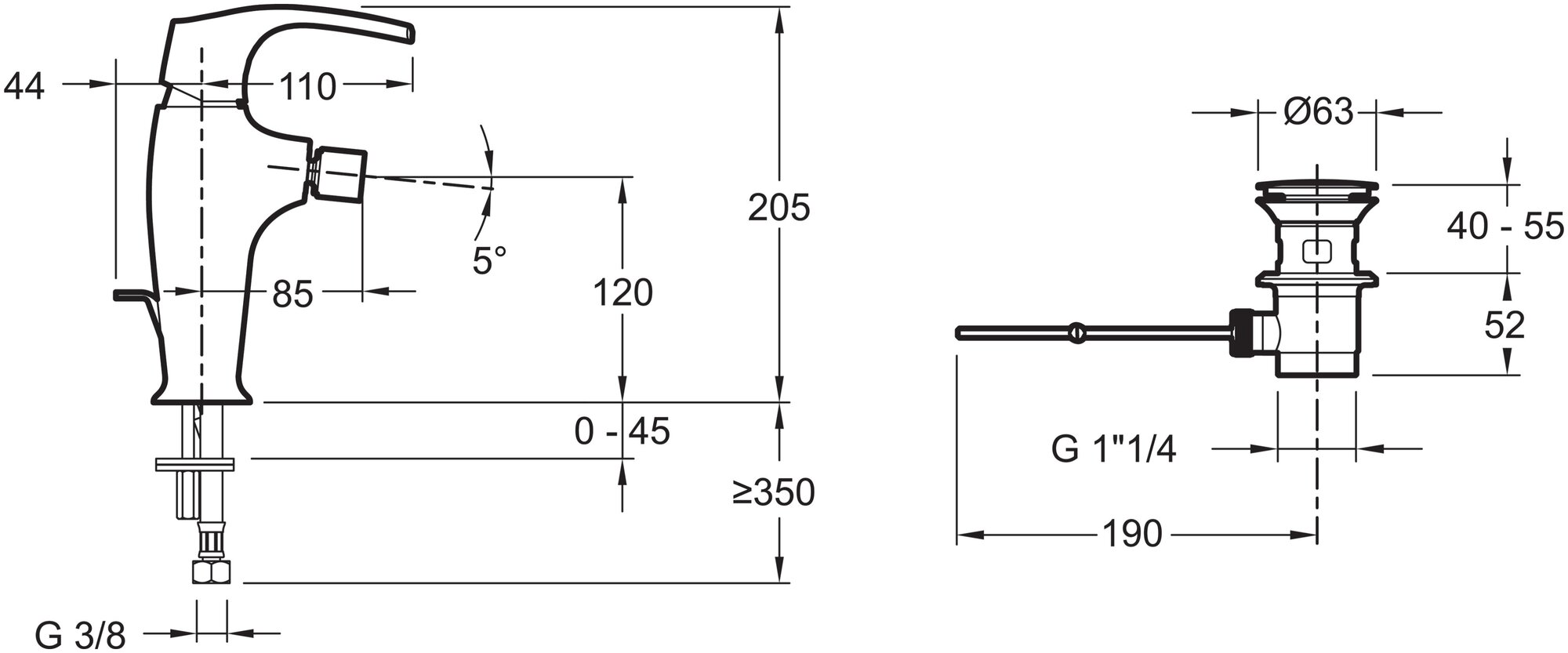 Смеситель для биде с донным клапаном Jacob Delafon Symbol E73680-CP