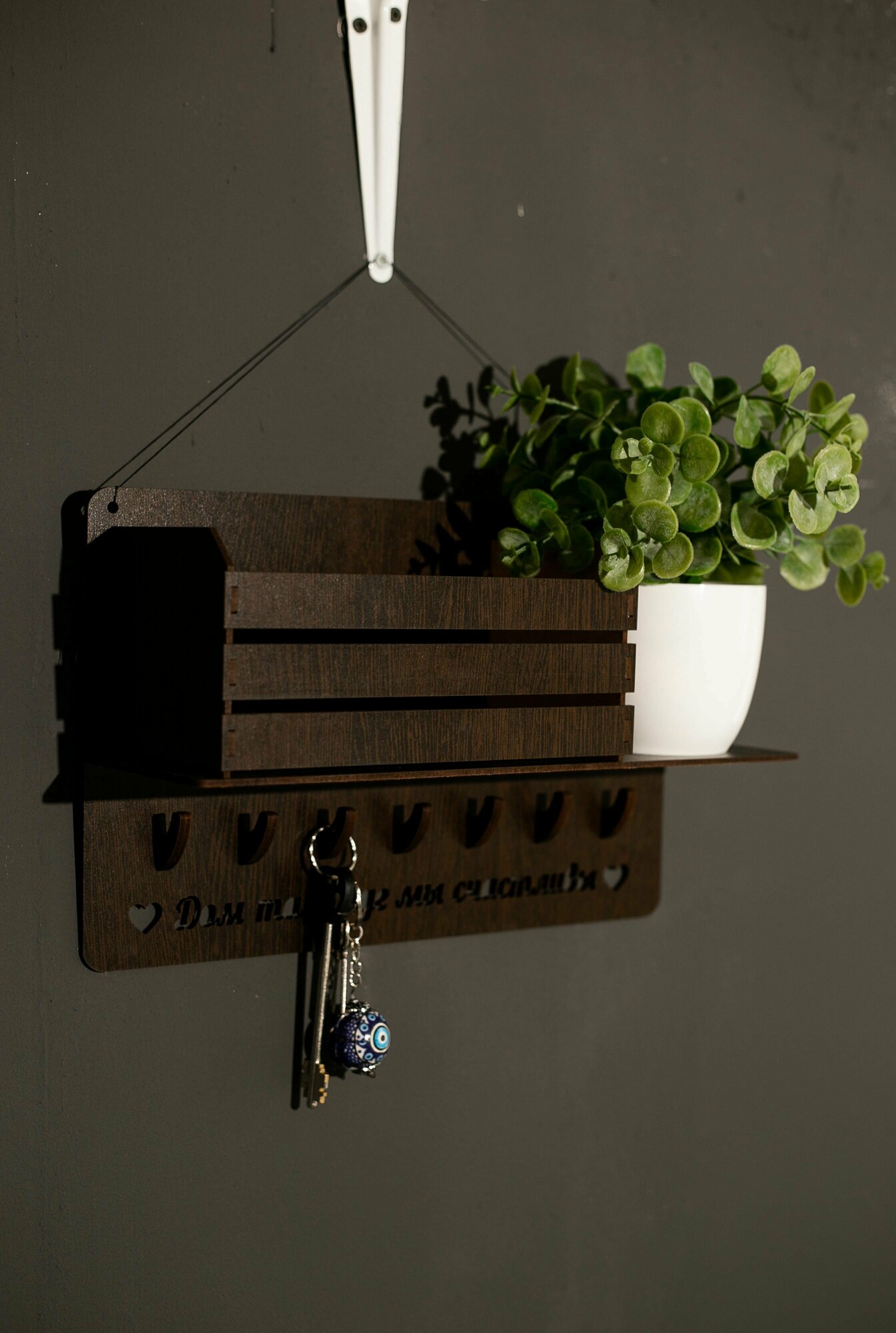 Ключница настенная в прихожую с фамилией именная "Дом Семьи Дмитриевых" на стену