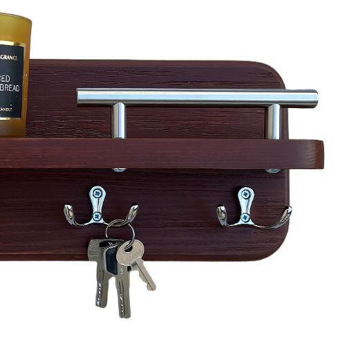 Полка настенная с крючками Ключница на стену деревянная Вешалка для ключей