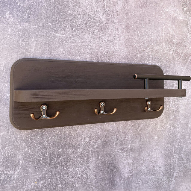 Полка настенная с крючками черная Ключница на стену деревянная Вешалка для ключей