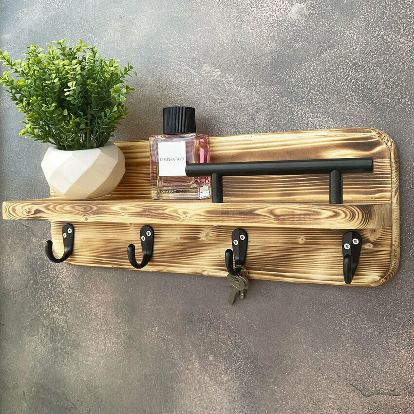 Ключница на стену деревянная полка с крючками