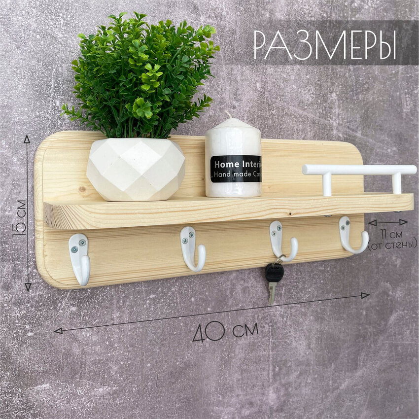 Ключница на стену деревянная полка с крючками