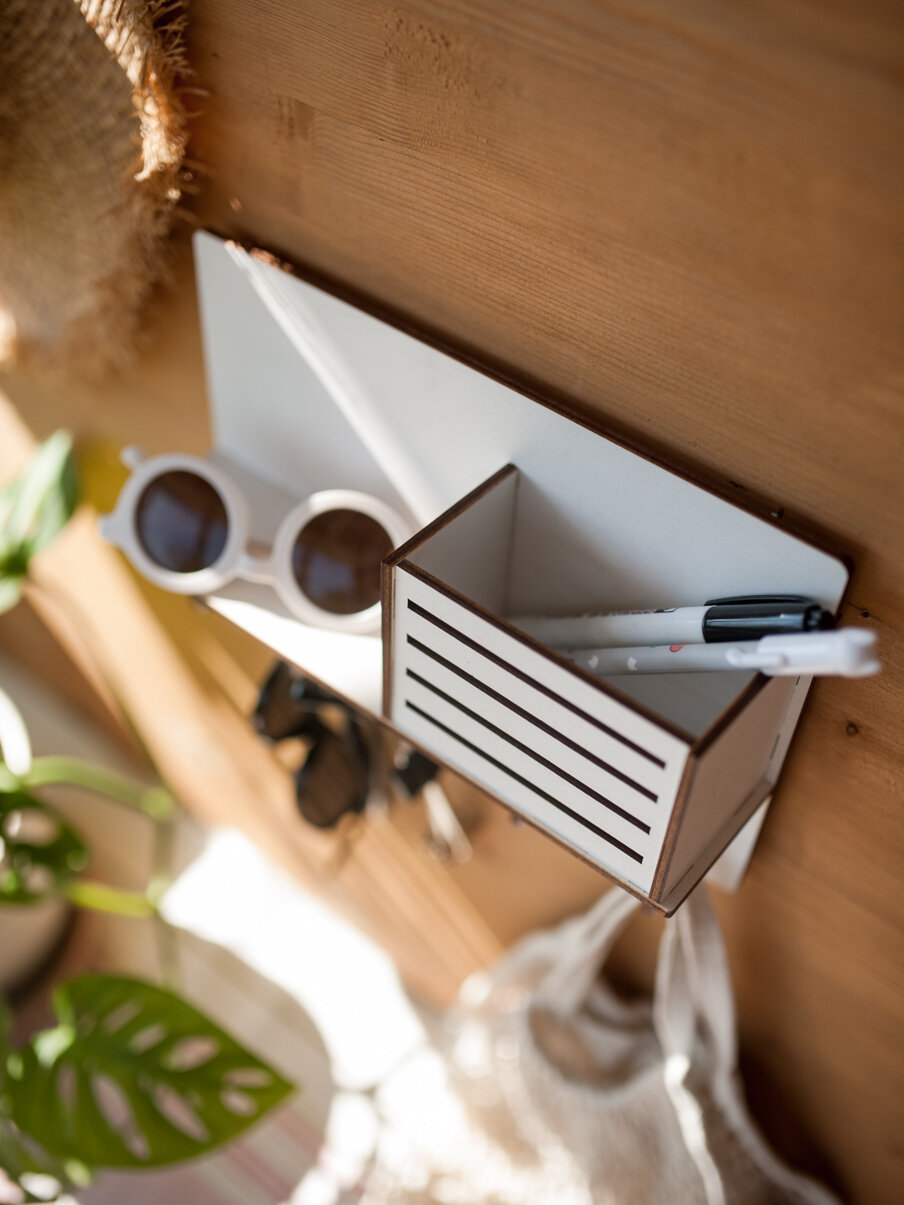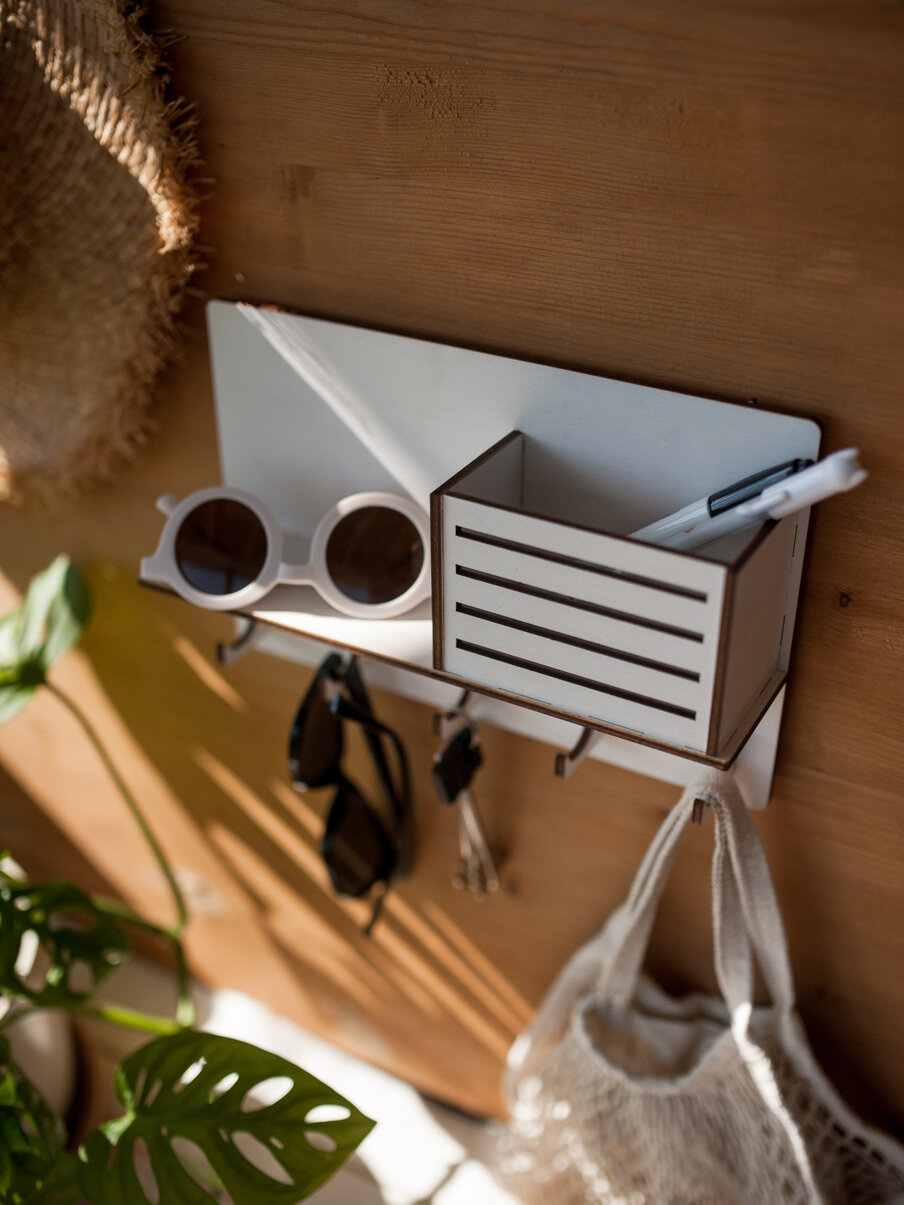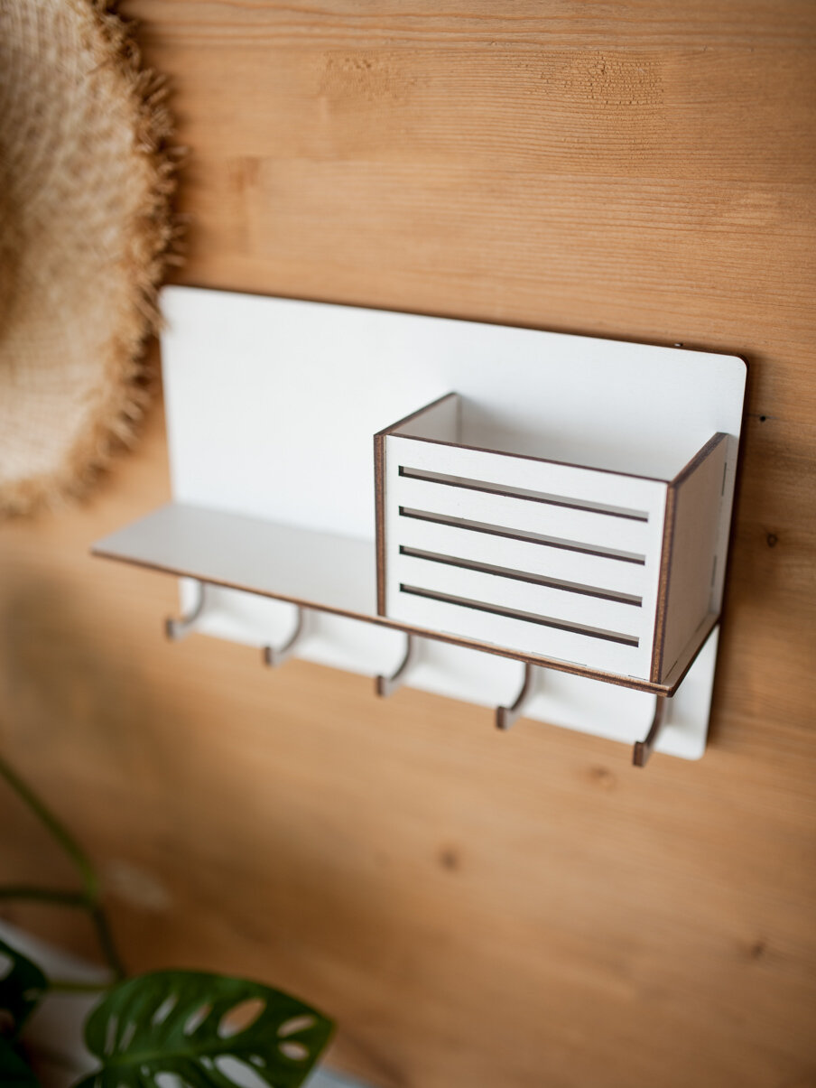 СохранитьКлючница настенная деревянная Bezusoff с 5 крючками и полочкой. Цвет белый, размер 25 см на 16 см. интересное: