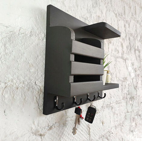 "Черная настенная ключница с полкой" от Chiwoodo интересное: