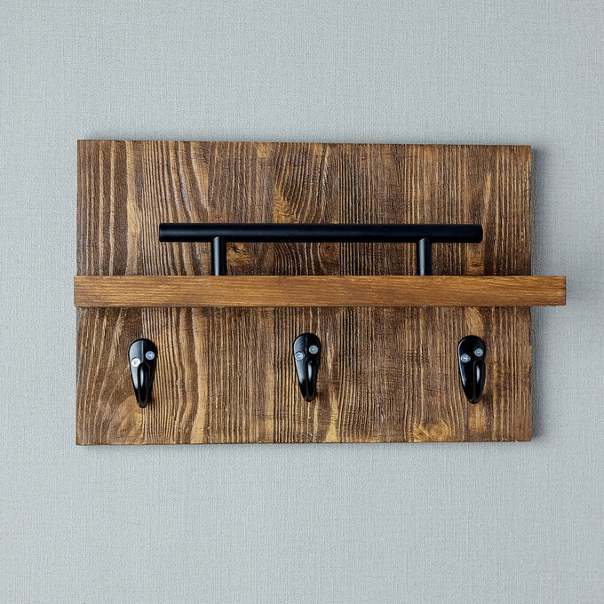 Полка на стену с крючками, деревянная ключница Chiwoodo