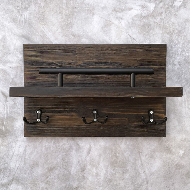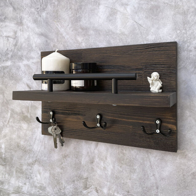 Полка на стену с крючками, деревянная ключница Chiwoodo