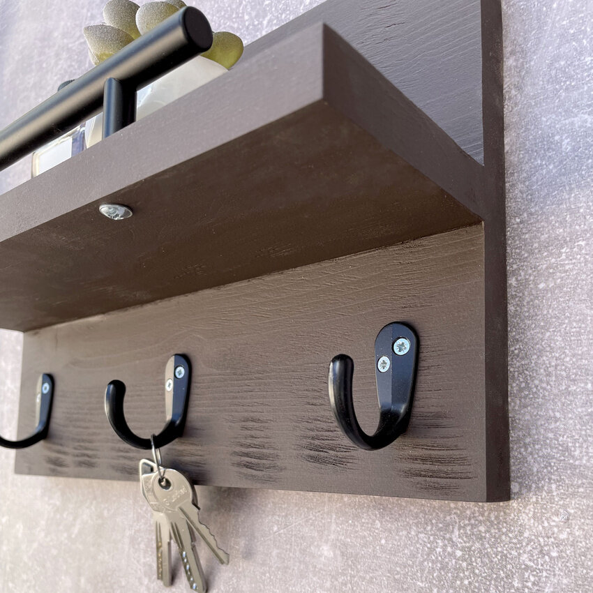 Полка на стену с крючками, деревянная ключница Chiwoodo интересное: