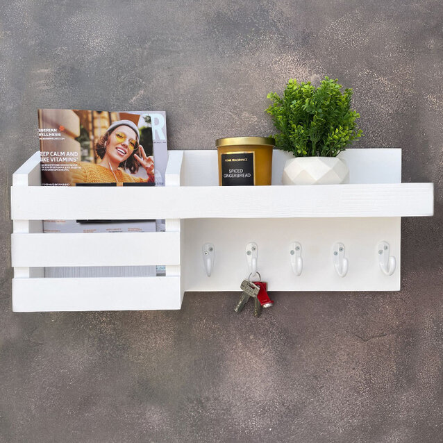 "Ключница Chiwoodo" - белая настенная ключница из дерева с полкой и органайзером