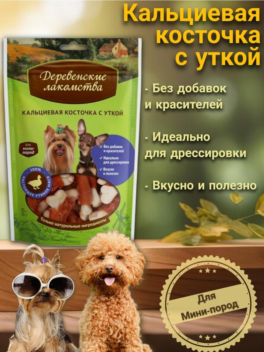 Деревенские лакомства "Кальциевая косточка с уткой" для мини пород пакет, 55 гр