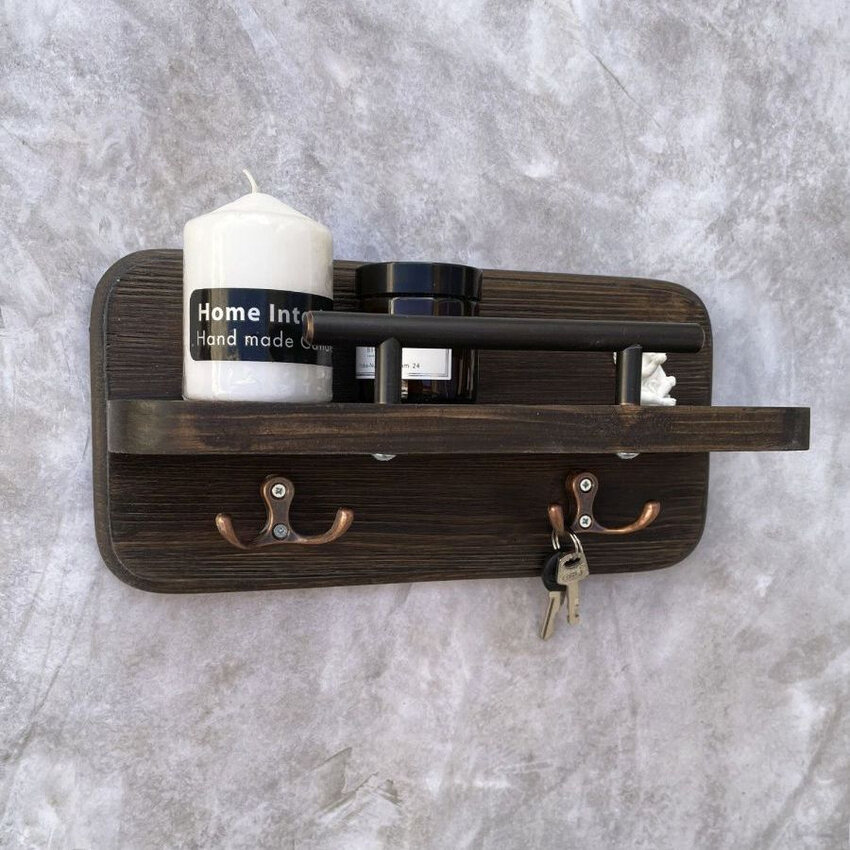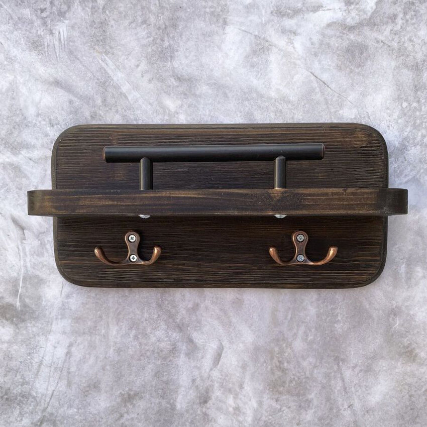 "Ключница с полкой" - ключница с тремя крючками из дерева