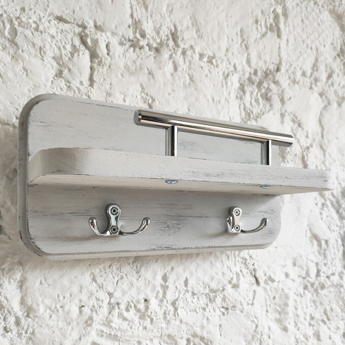 Ключница настенная белая с полкой в коридор Полка вешалка с крючками для ключей из дерева