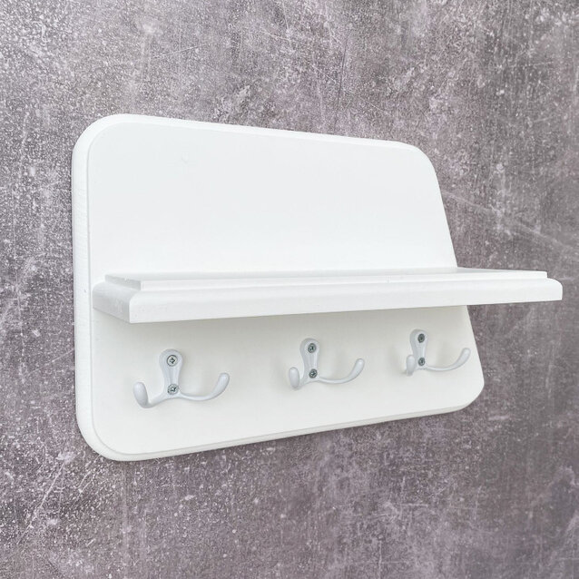 Купить Ключница настенная белая из дерева с крючками на стену Chiwoodo