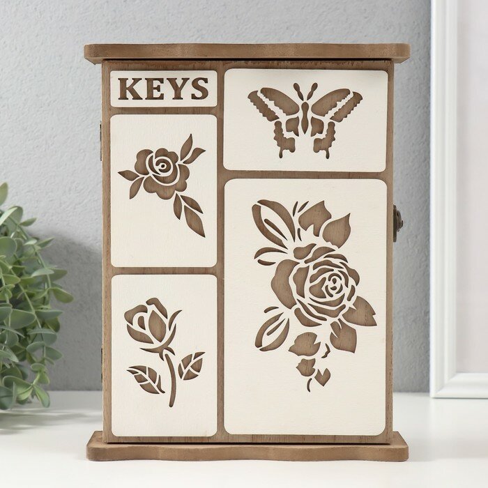 Ключница дерево 6 крючков "Розы и бабочка" 6,2х19,5х25,2 см интересное: