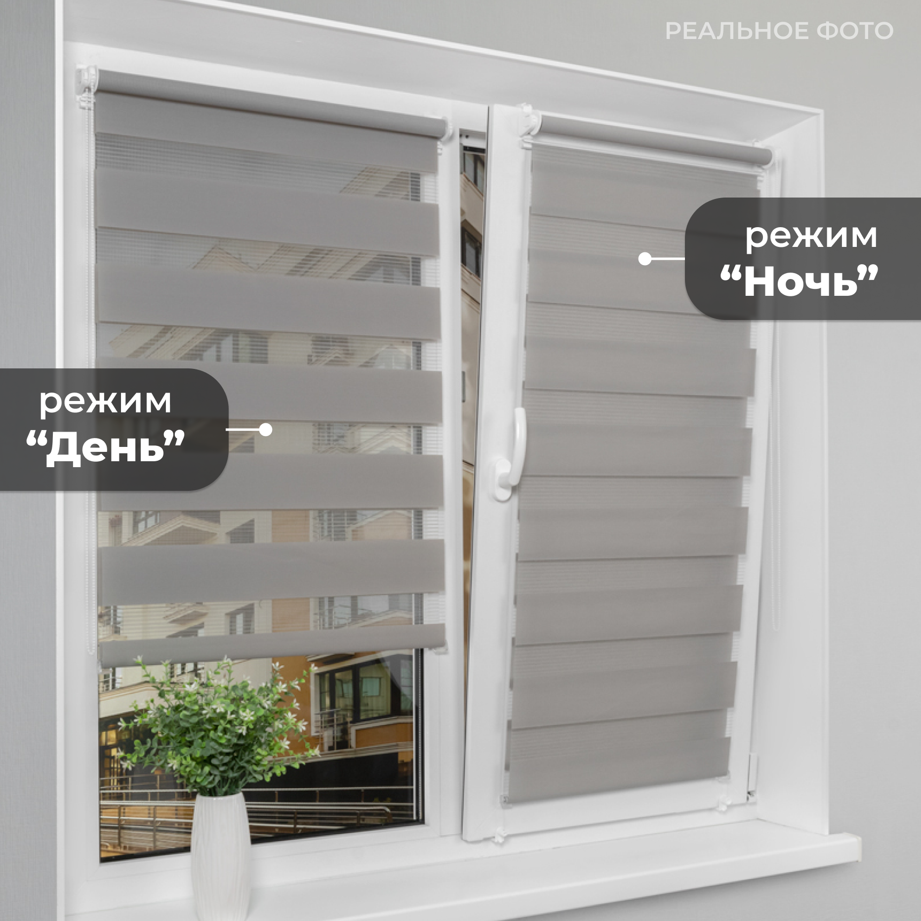 LM DECOR Рулонная штора день-ночь lb 10-17 серый 34x160 см, арт. 1017034